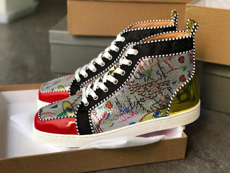 Best Quality Red bottom shoes Designer high top silver spikes men shoes Red Bottom Sneakers designer leather Fla